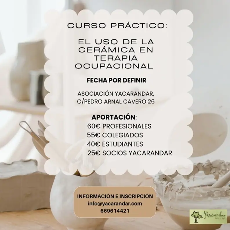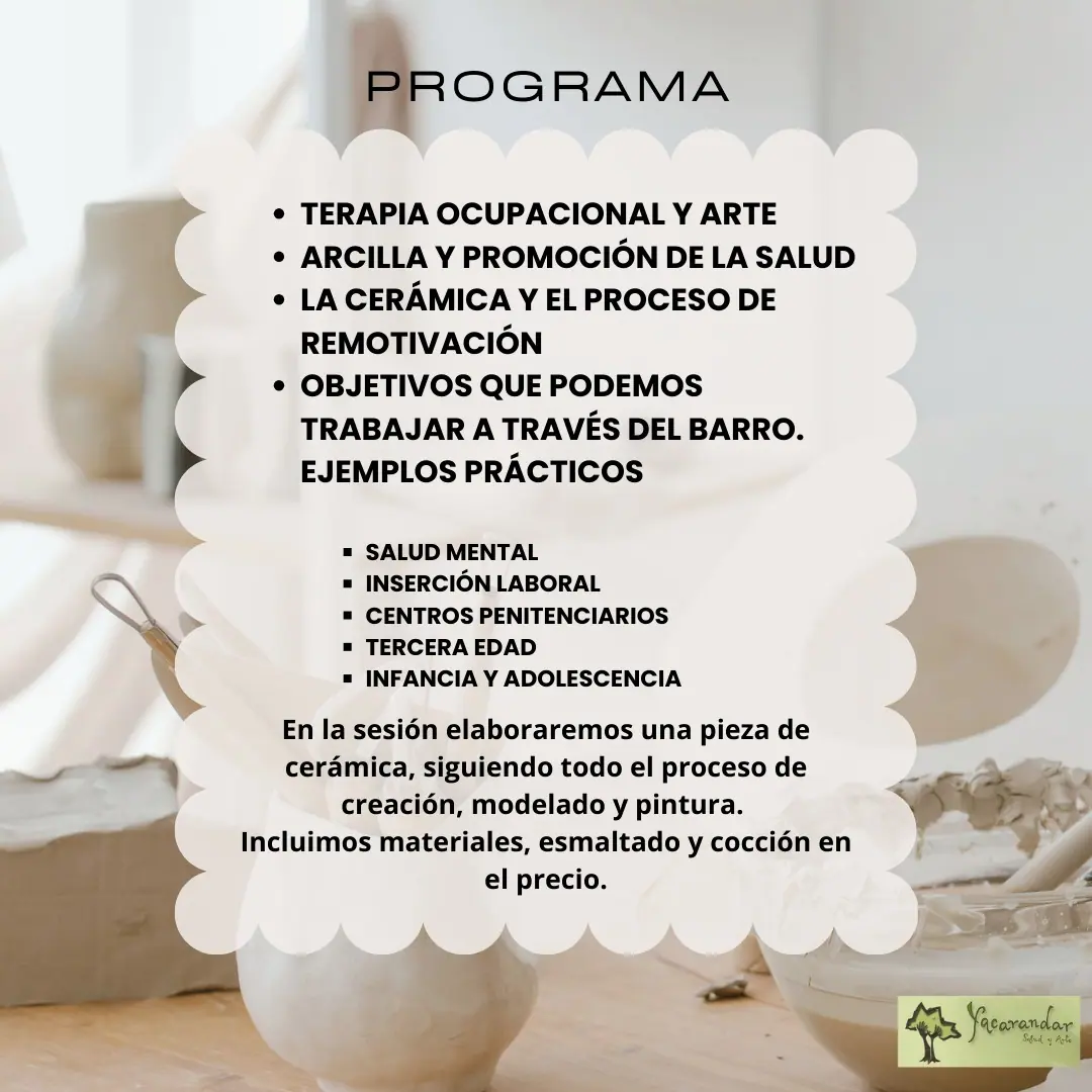 Este curso ofrece una formación práctica sobre la aplicación de la cerámica en terapia ocupacional, dirigida a profesionales, estudiantes y socios interesados en integrar la creatividad como herramienta terapéutica.